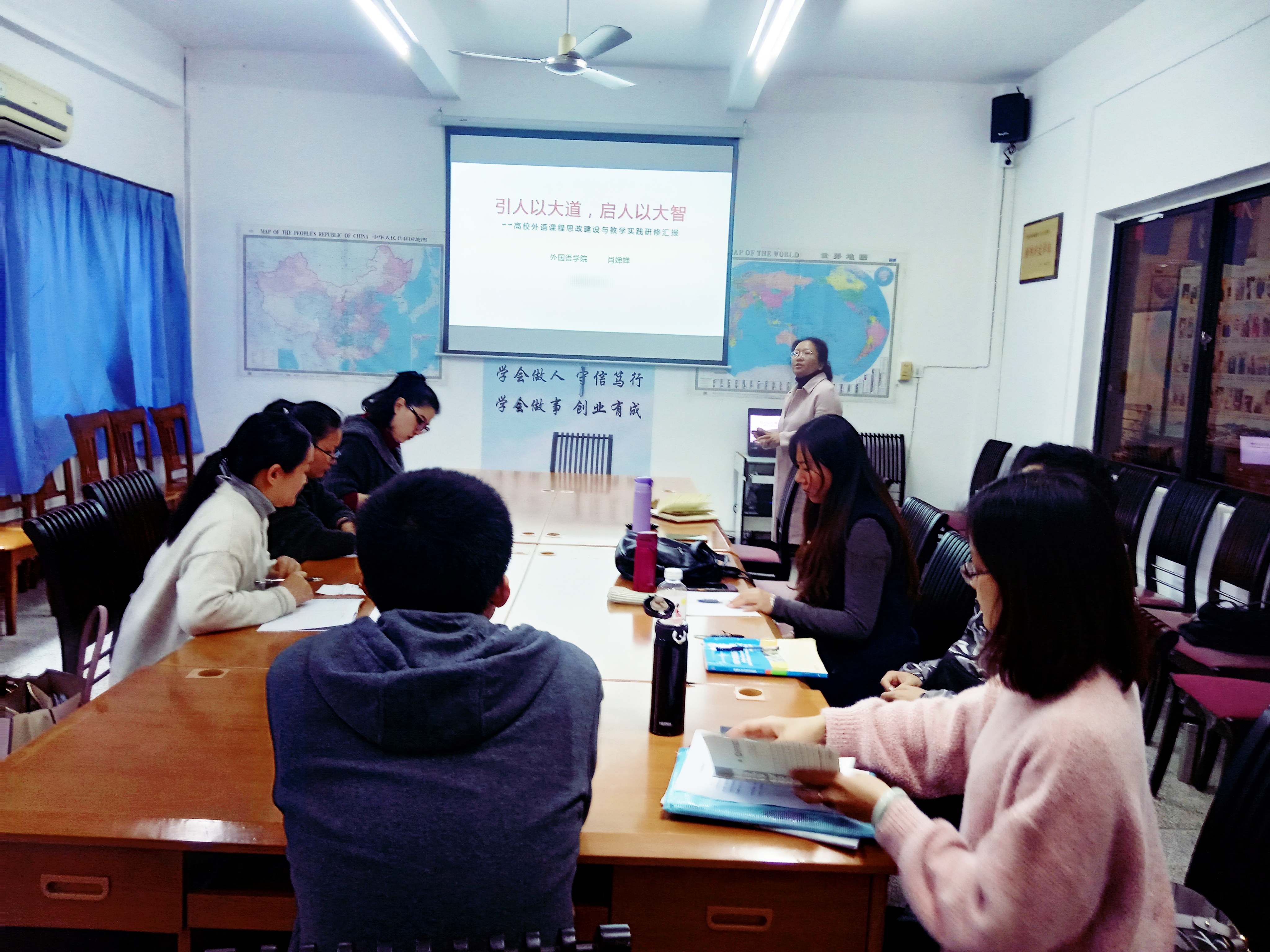 本次研讨活动总结汇报了本学期重点开展的三个研究主题:第一, 如何做到教书与育人紧密结合、怎样建立新型的师生关系,第二,课程思政元素如何贯穿英语课堂教学,第三,外语教师如何在教研中提升文化自信。