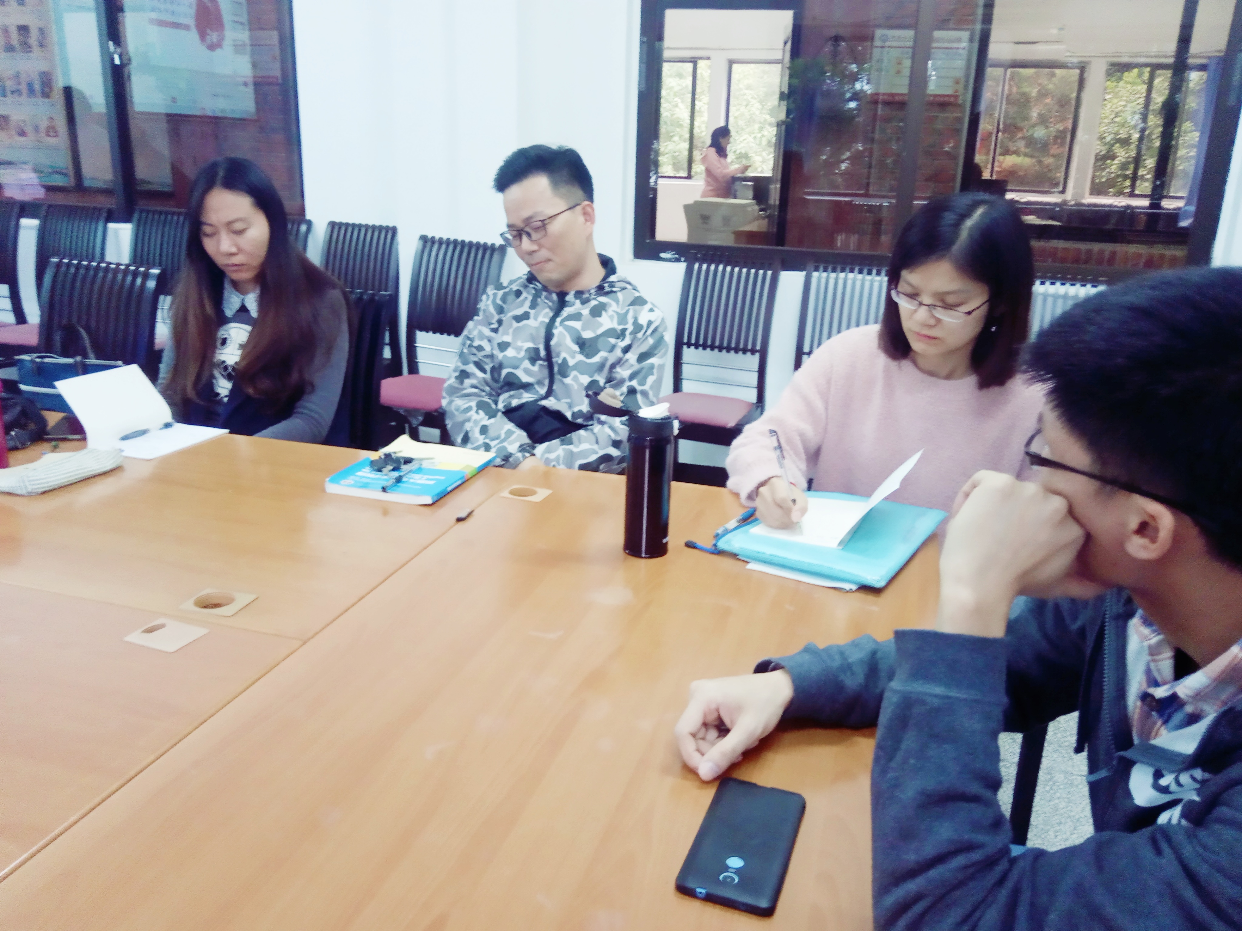 围绕这单个主题,各参会成员纷纷发言,分享了本学期的研究成果和教学感悟,并对未来教学和科研方向进行了讨论。其中,蔡维老师就“英语教师如何做到教书育人,怎样建立起新型的师生关系?”,提出“学高为师,身正为范”。他指出,英专教师应该积极挖掘教材的育人价值,在传统的语法和单词教学方法的基础上,加入多样化的教学方法,精心设计好各项教学活动,切实让学生成长为积极、主动、快乐和合格的语言工作者和中国文化传播者。对于“课程思政元素如何贯穿英语课堂教学”这一议题,肖婵婵老师从 “引人以大道,启人以大智”说起,谈到了“育人为本,德育为先”,以及“外语老师应引导学生学习中国思想和中国文化”。林燕媚老师对于“外语教师提升文化自信的教学科研”,提出英语教师与学生都要学好中国文化,在学好本土文化基础上提升文化自信,才能成为好的中国文化传播者。