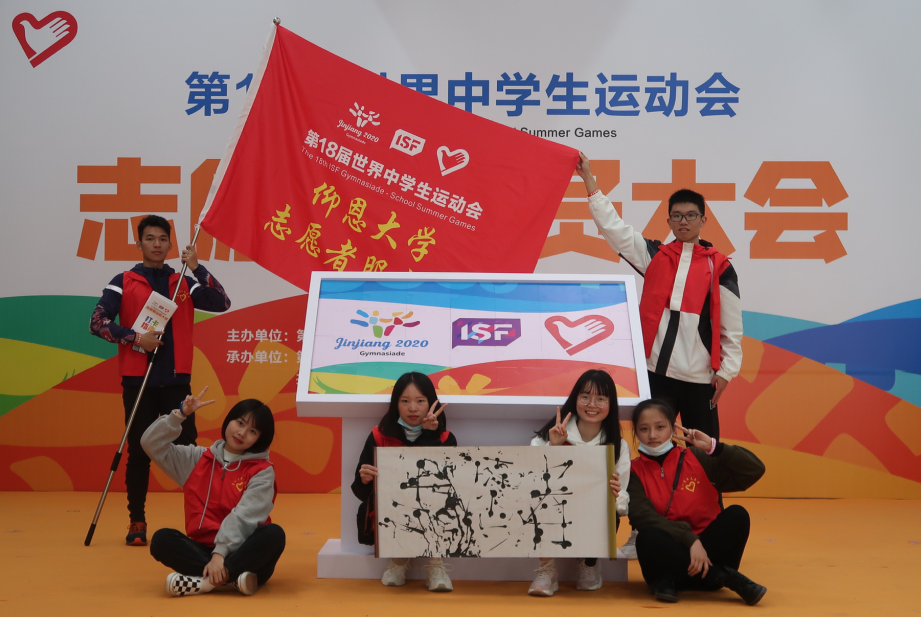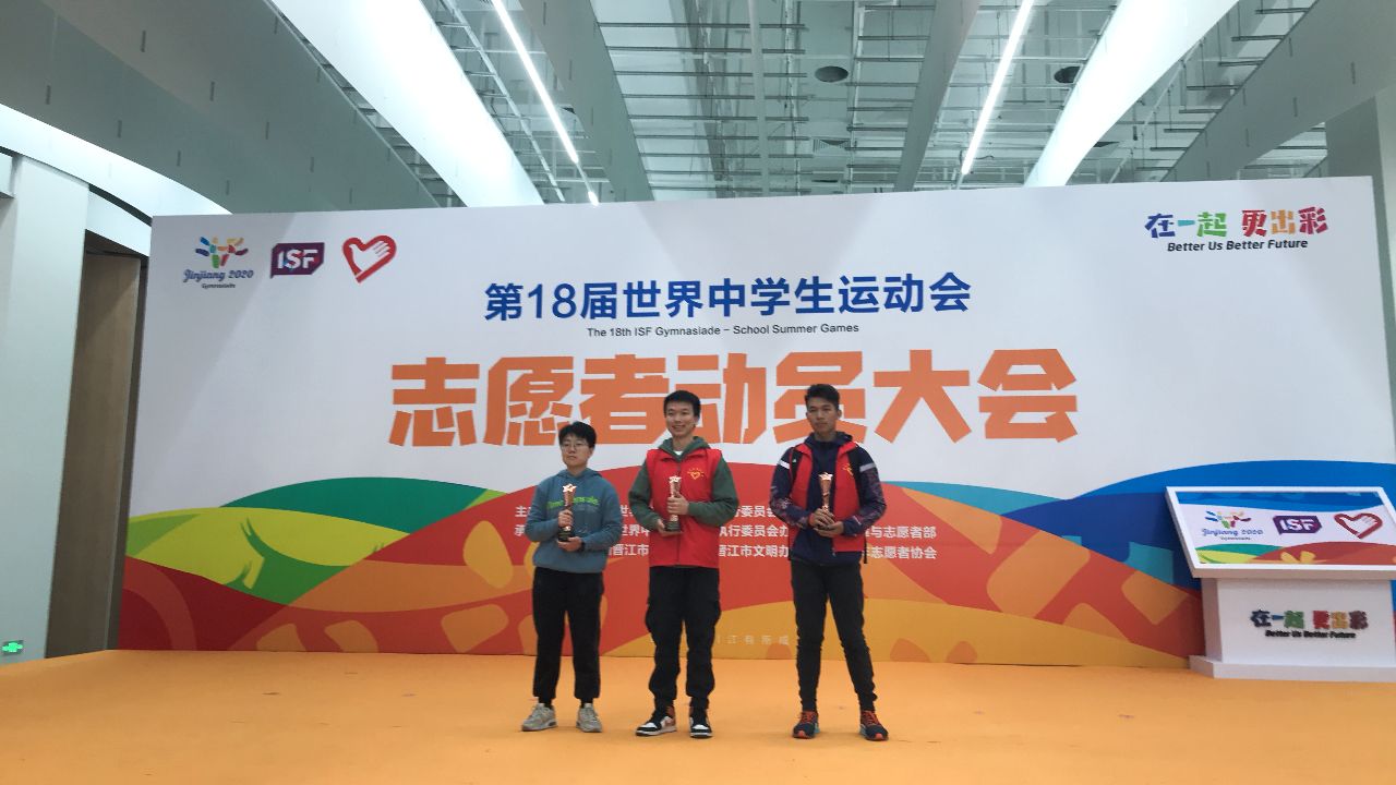 milan米兰官网派出了6名代表参加,milan米兰官网2018级英语2班的谢程航同学作为milan米兰官网志愿者服务队代表接受了世中运会执行委员会授旗。
