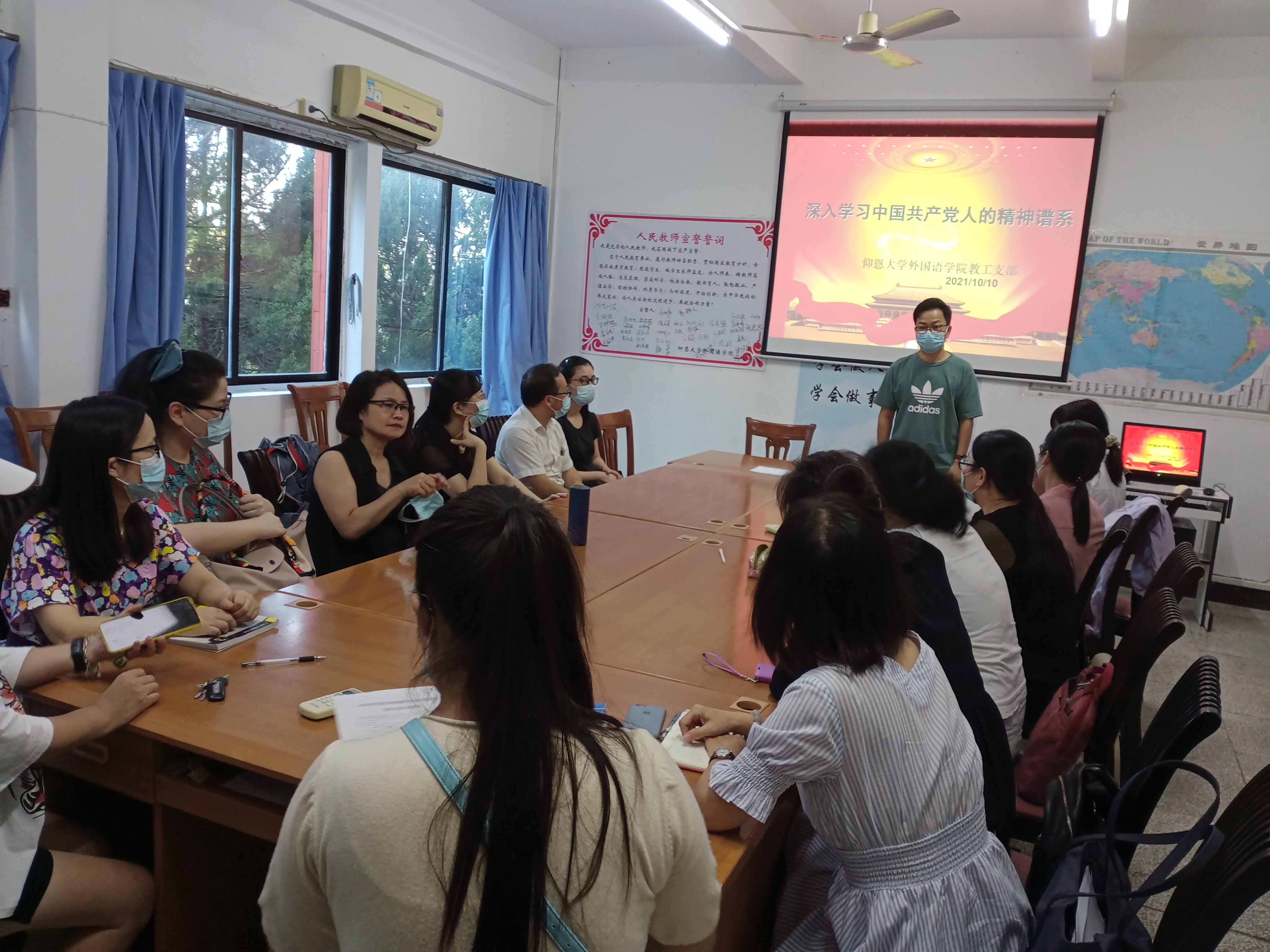 10月10日milan米兰官网教工党支部在仰光楼学院办公室开展全体党员大会,深入学习中国共产党人的精神谱系。会议由教工支部书记蔡维主持,全体教师党员参加。