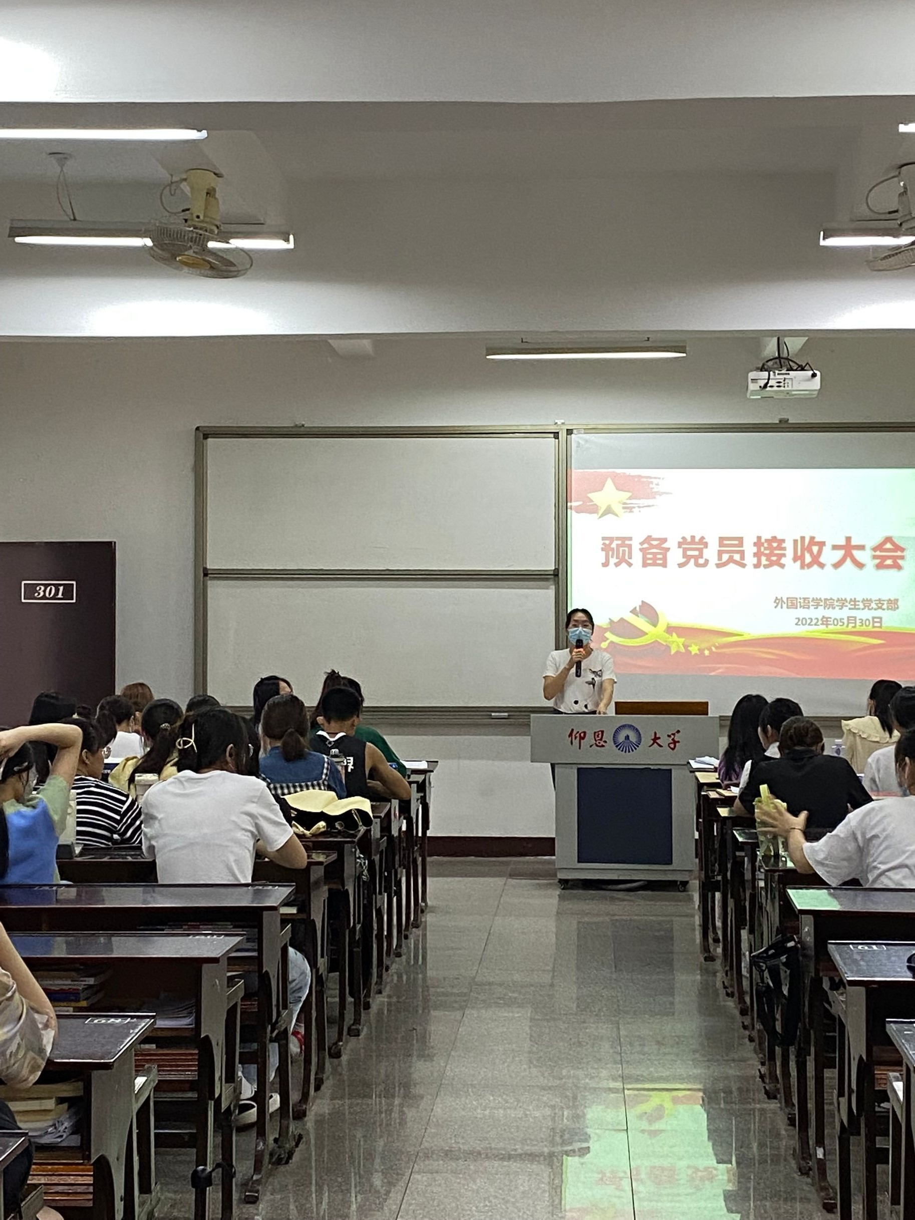 2022年5月30日milan米兰官网学生党支部在普照教学楼301教室召开预备党员接收会议。本次会议由许淑琴书记主持,向修玉同志、位美娅同志以及全体支部成员出席参加。