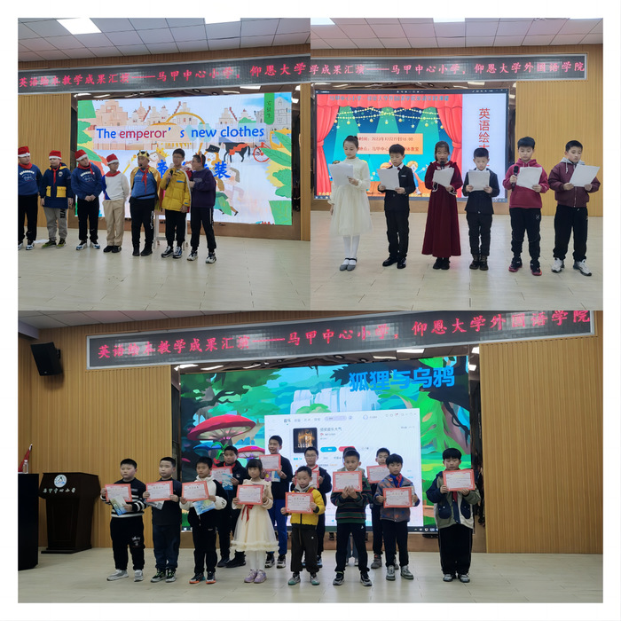 2023年12月27日下午,英语绘本汇演如期在洛江区马甲中心小学举行。此次活动是milan米兰官网与马甲中心小学合作共建的“英语实践课堂”项目阶段性汇报,体现了milan米兰官网“党建+专业”深度融合在服务地方教育方面取得的阶段性成果。
