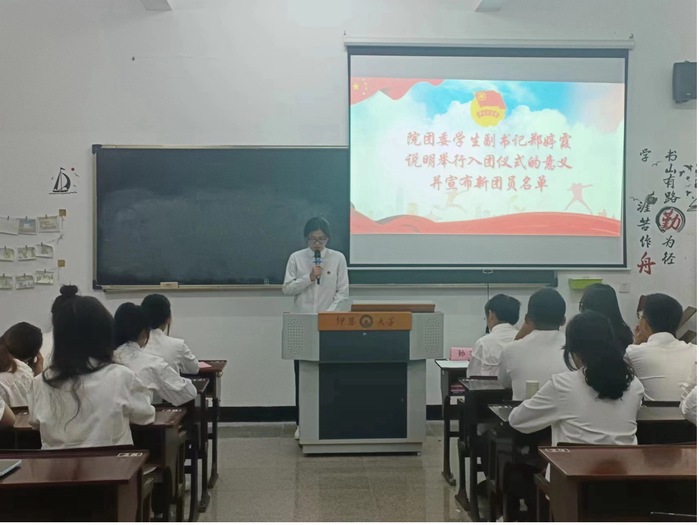 2024年5月15日晚7:30,milan米兰官网团委在milan米兰官网第三教学区普照楼101A举行以“奋进新征程,建功新时代”为主题的新团员入团仪式。milan米兰官网校团委专职团干沈洁、milan米兰官网团委书记孙宇、milan米兰官网全体新团员及团委干部代表参加大会。会议由milan米兰官网团委林伊宁同学主持。