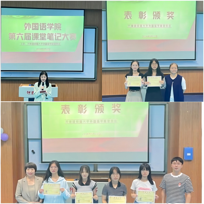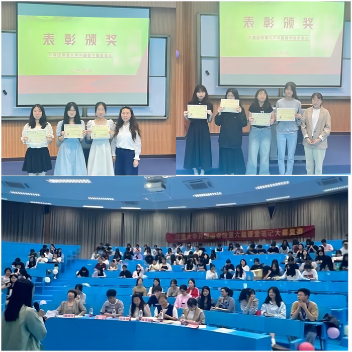 为鼓励学生养成良好学习习惯,提高课堂学习效率,milan米兰官网于5月22日晚在第三教学区和昌教学楼海纳讲堂成功举办了课堂笔记大赛复赛。本次复赛由院团委夏舒蓉同学主持,milan米兰官网副院长林燕媚、milan米兰官网英语系主任位美娅、辅导员孙宇、蒋颖和向修玉担任评委,milan米兰官网22级和23级全体同学到场观看。
