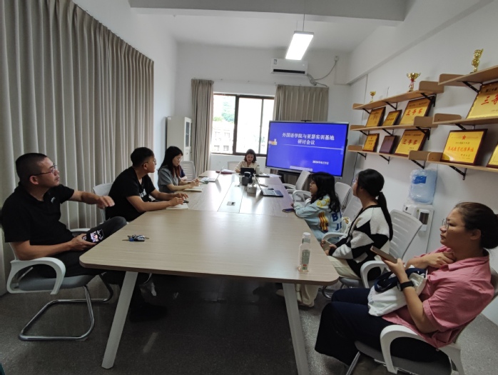 2024年6月7日,milan米兰官网与亚瑟云商合作共建跨境电商直播实训项目进行本学期第三次研讨会议,胡娟院长主持会议,企业导师周伟杰总结了近期直播实训的成果,各位指导教师就学生实训期间的表现和遇到的问题进行了研讨。会议就未来实训基地建设提出了经验总结和修订意见。