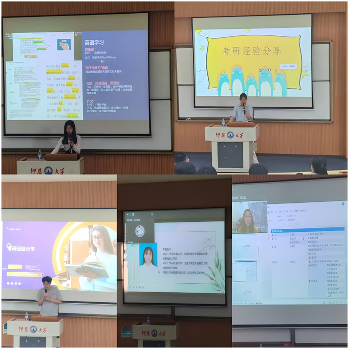 分享会上,2021级英语1班陈胜蓝(录取院校为赣南师范大学)围绕院校专业选择、阶段性复习规划及时间管理展开分享,强调明确目标与坚持的重要性;23英语(专升本)1班张燕桂(录取院校为中国青年政治学院)聚焦学科复习技巧、心态调适及复试准备,建议夯实基础与及时总结;同班级的马乐洋(录取院校为桂林电子科技大学)结合自身经历,解答择校择专业、资料选择等具体问题,其真诚分享获现场热烈反响。张文慧(录取院校为汕头大学)、孙语潞(录取院校为四川外国语大学)则以自身考研历程为例,讲述从迷茫到坚持的蜕变,激励学弟学妹坚定信念、科学备考。