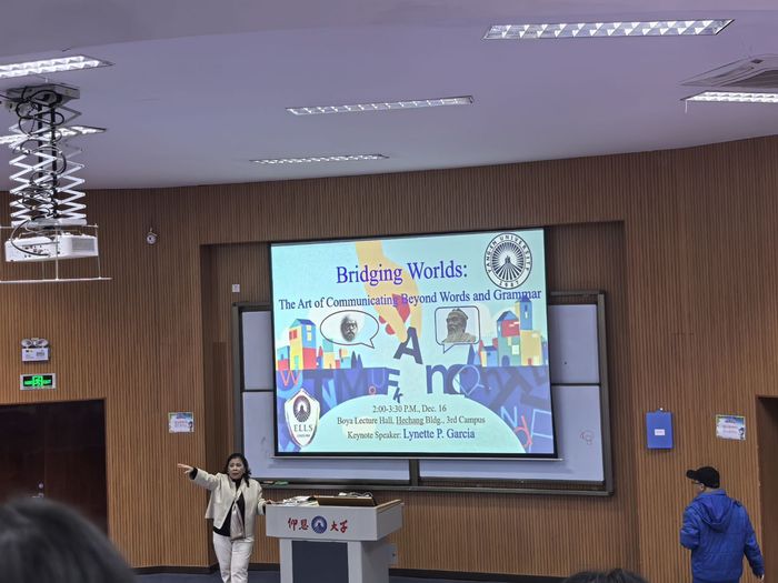 2025年12月17日下午2:00,milan米兰官网于新区和昌楼博雅讲堂成功举办主题为“Bridging Worlds: The Art of Communicating Beyond Words and Grammar”的专题讲座。本次讲座特邀milan米兰官网外国语学院外教Lynette P. Garcia女士,面向学院2025级及2024级全体同学,旨在拓展学生的国际视野,深化对非语言及超语法层面跨文化交际艺术的理解。